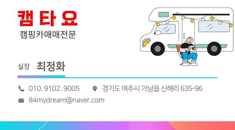 캠핑카전용 매매상사 캠타요 민과장입니다!