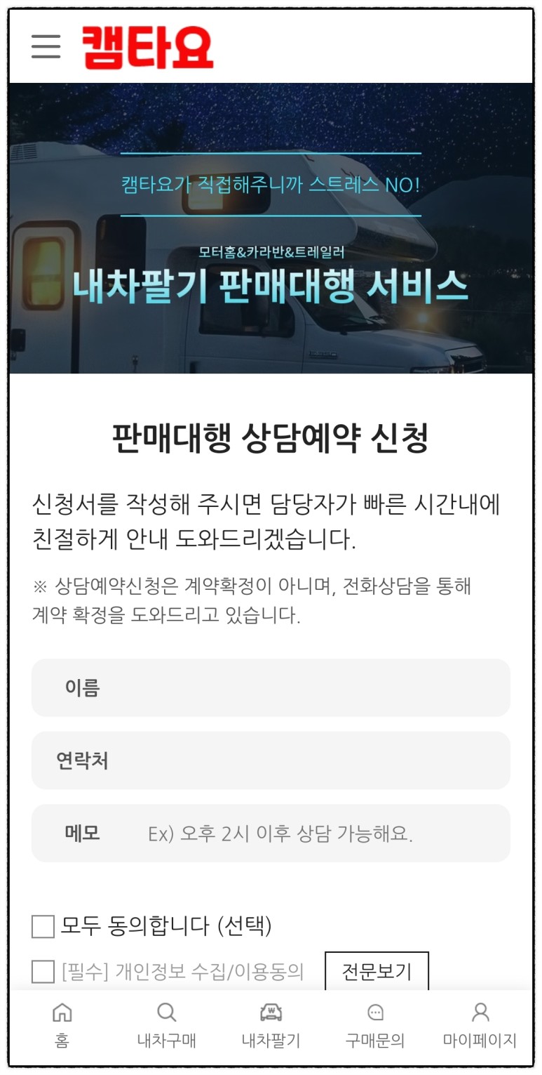 시세대로 고객님의 캠핑카를 판매해드릴께요.