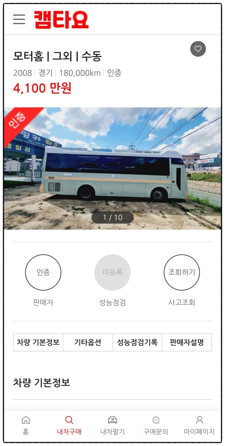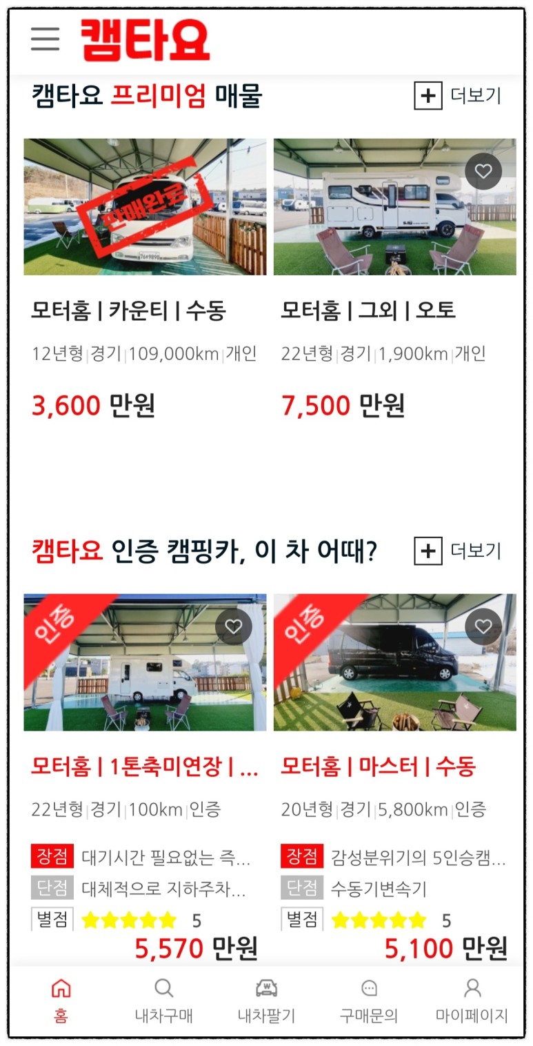 구매자를 위한 중고캠핑카 안전거래시스템: 캠타요인증매물