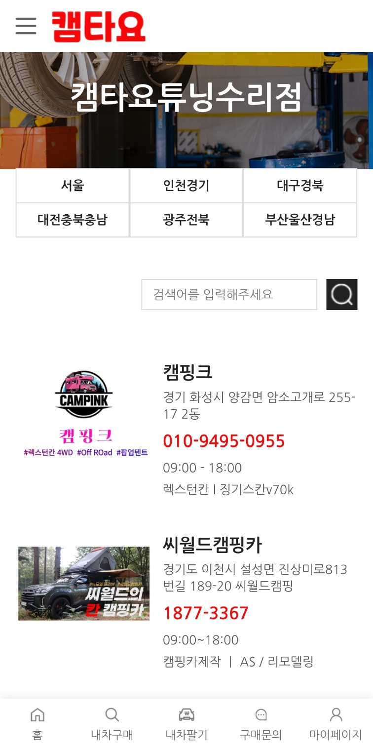 셀프등록서비스, 판매대행서비스, 위탁판매서비스, 인증캠핑카서비스, 캠타요 전국망구축을 통한 전국망서비스를 제공해드리고있습니다.